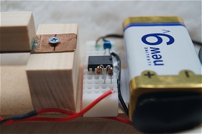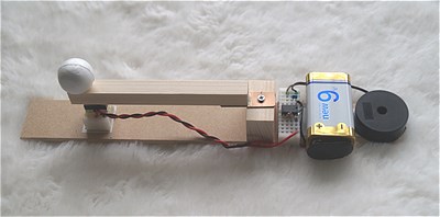 これらで発振器を作り、スイッチでとそれをon,offしています。白い球を押すとピーッと鳴ります。
